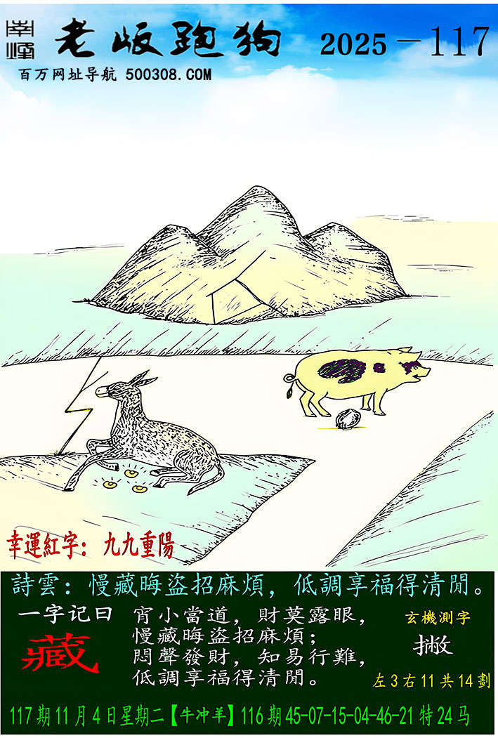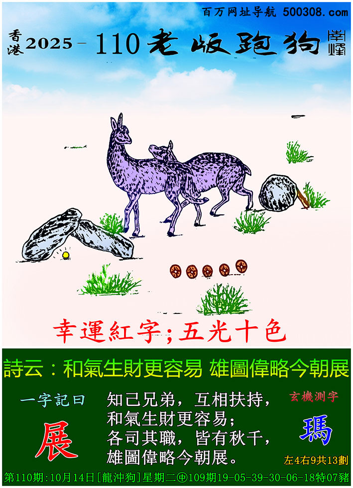 110期跑狗图:一字記之曰:【錢】 錢可暖身,亦能擾神。 解人急難,也誘心貪。玄機測字:《增》 一語中特:三五成群